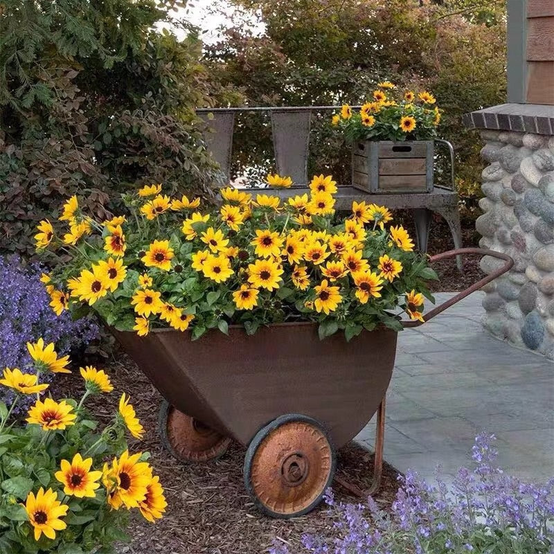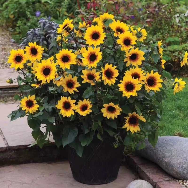 Plant name: Super Sunflower Glory Years, a pot of flowers can bloom 1000 flowers, perennial plants, can be built by hitting the top to achieve the effect of bursting pots, only not below zero weather, winter can bloom. This flower comes with a sense of hierarchy, planting a piece is also very beautiful.